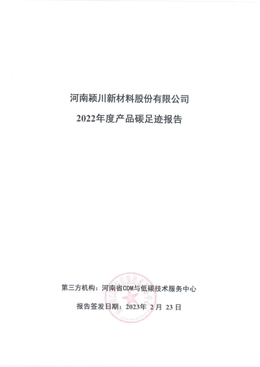 152023-03河南颍川新材料股份有限公司《碳足迹报告》