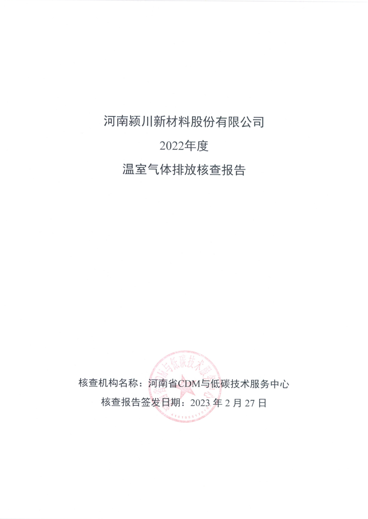 152023-03河南颍川新材料股份有限公司《2022年温室气体排放碳核查报告》