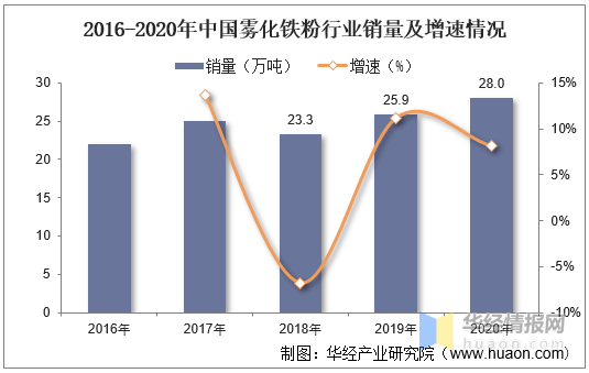 202022-092016-2020年中国雾化铁粉行业销量及增速情况
