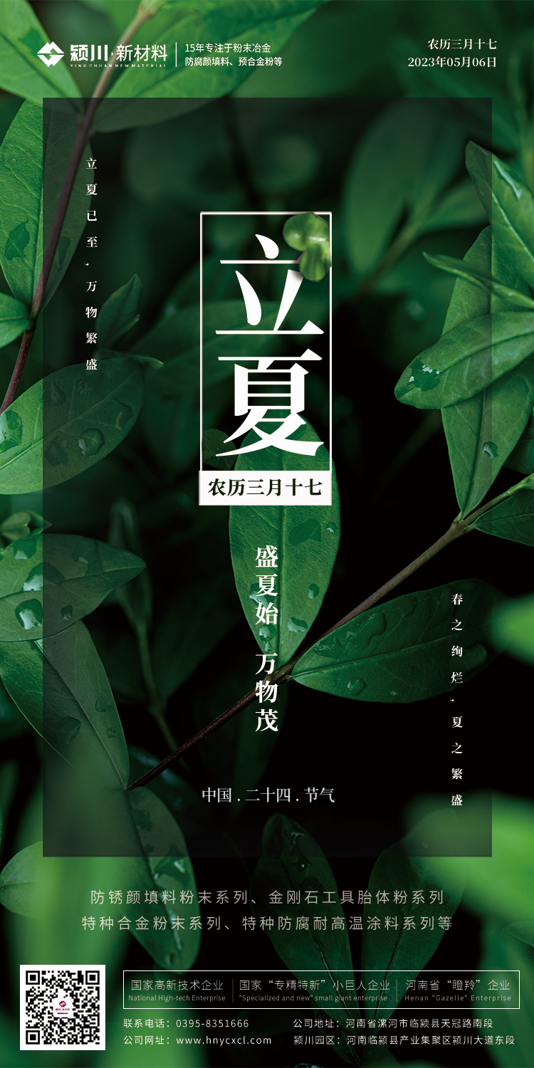 ┍立┑ 初夏已至 万物并秀┕夏┙ 生如夏花 不负韶华在这个初夏,让我们以满分的热忱,共赴夏日的开幕!——#颍川新材料 :0395-8351666